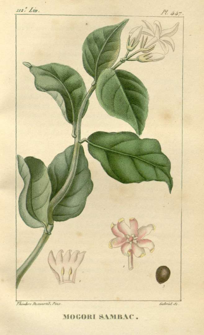 Jasmim Sambac ou árabe foi apresentado ao duque da Toscana em 1690. Esta espécie possui um aroma mais verde, mais indólico com uma nuance de citros. Há espécies mais interessantes de jasmins: