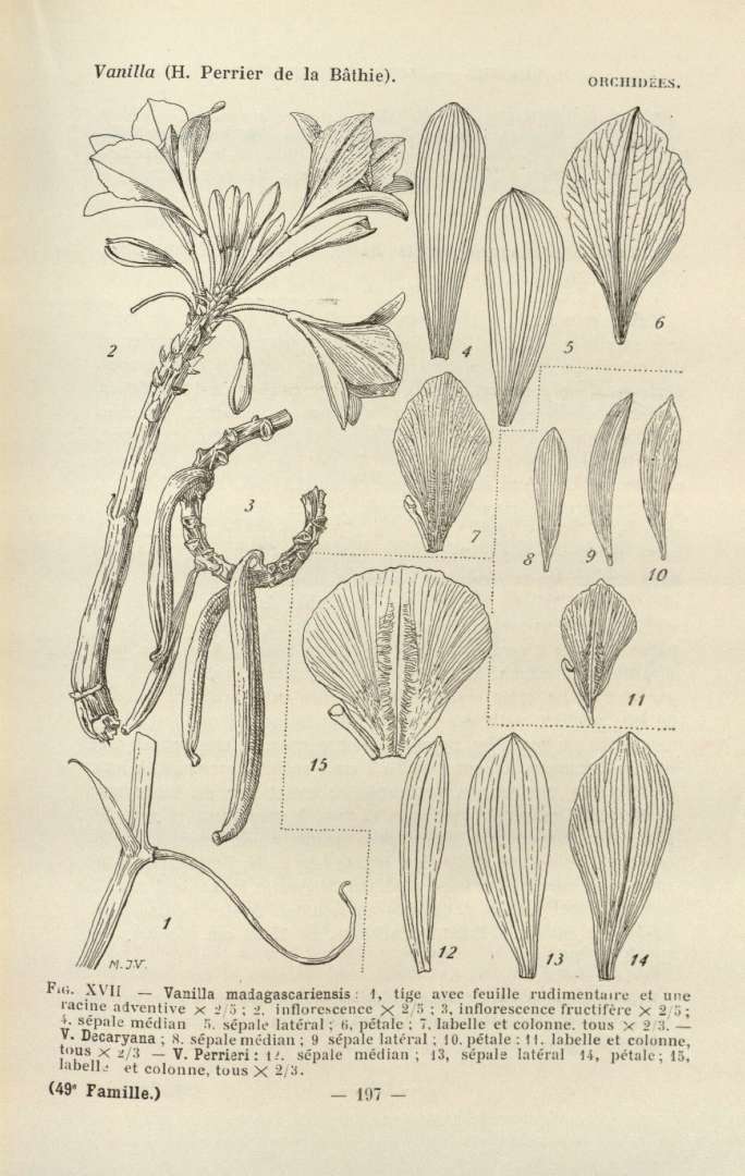 Em condições naturais as flores são polinizadas por insetos e beija-flores, mas em plantações é feito manualmente. Vagens verdes permanecem nos ramos de 8-9 meses e depois de colhidos são submetidos ao processo de maturação por 34 meses. Durante tal processo que se formam os cristais da chamada vanilina.