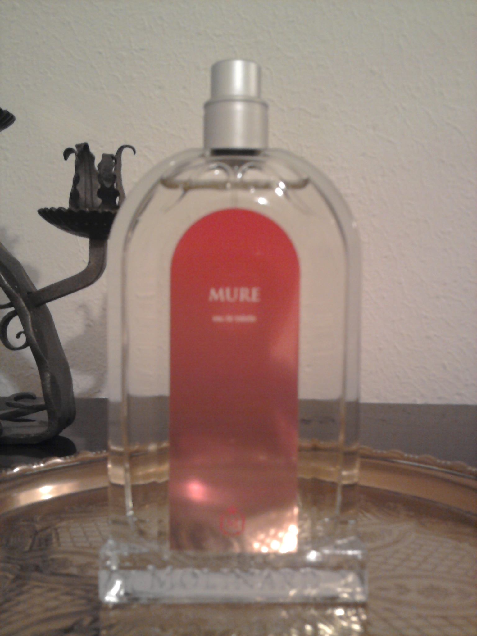 Les Fruits: Mure é um delicioso membro da família olfativa Floral Frutal lançado em 1993. A saída é licorosa, com um toque medicinal que lembra vagamente o Lolita Lempicka. A evolução é rápida, logo a nota de amora “amadurece” e explode na pele! O resultado é doce, azedinho, picante, apetitoso! O acorde medicinal desaparece por completo e fica e doçura da fruta, sem o artifício da baunilha, que só dá as caras depois, quando o perfume já está esmaecendo. É o pôr-do-sol em um campo repleto de amoreiras carregadas… A parte ruim é que tal pôr-do-sol é bem rápido, a longevidade do Mure não é das melhores, cerca de 3 horas.